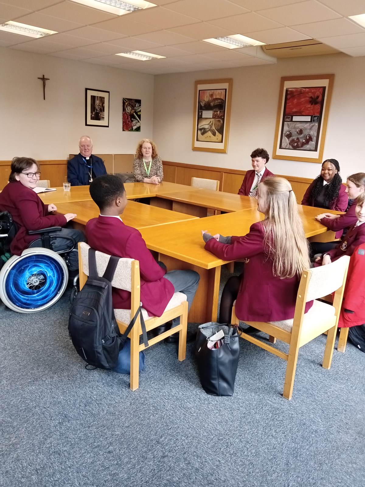 We were absolutely delighted to welcome Bishop Bosco MacDonald from Clifton Diocese to St Augustine’s College on Wednesday 4th March for his very first visit! With the sun shining, our senior Sixth Form Team were honoured to proudly show him around our college community. They also enjoyed time together discussing their plans for the college and learning from the Bishop’s own experiences. Our KS3 and KS4 student voice representatives joined an engaging Q&A session with Bishop Bosco, asking thoughtful questions and sharing their perspectives. It was a fantastic occasion for our students to connect, learn, and extend a truly warm St Augustine’s welcome to him.